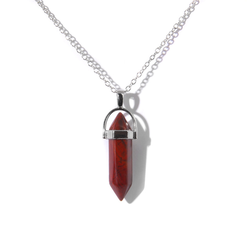 Natural Quartzs Stone Charm Necklaces For Women Men Winding Hexagonal Column Reiki Pendulum Pendant Necklace Chain Jewelry Gift Red Stone-45cm