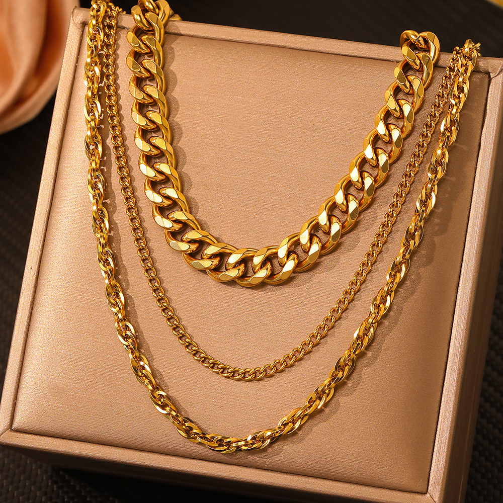 Stainless Steel Necklaces Temperament Minimalist Twisted Chain Hip-Hop Retro Stackable Necklace For Women Jewelry Gifts New in gold – Sumsfashion